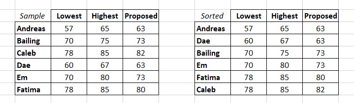 - The proposed score you would initially assign for that submission, which will fall somewhere in between the previous two values.